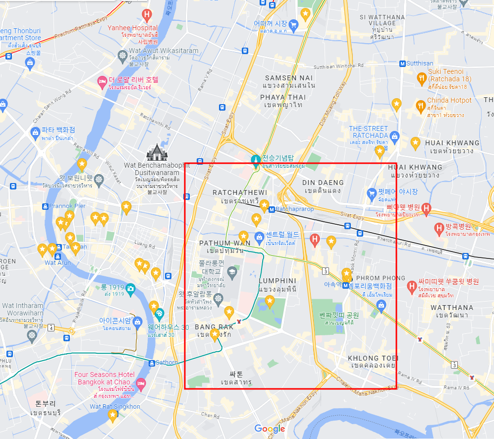 ─ 시암~아속역 근처: 교통의 중심지라 여행 시 이동하기에 편하고 근처에 현대식 건물들이 위치하여 편안함